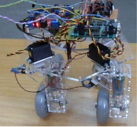 În Figura 1 sunt prezentați roboți mobili din seria Lynxmotion aflați în dotarea Laboratorului de Robotică. Acești roboți educaționali sunt proiectați inteligent și executați cu precizie din lexan și plăci din aluminiu. Componentele electronice și softurile necesare pentru ca roboții să poată fi utilizați în activitățile didactice de cercetare sunt de asemenea disponibile în laborator.
